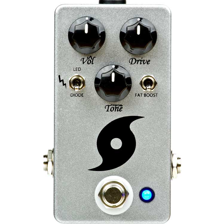 With the Tubescreamer’s mid-range hump, the Hurricane will give you that classic overdrive that’s recognizable on tons of famous recordings. Not a fan? No problem – flip the Fat Boost switch to recover the missing low end and you’ll have a much more transparent overdrive that takes this pedal beyond recognition of its vintage roots. If the sound has too much bite, roll the Tone knob forward which functions as a high-end roll off.